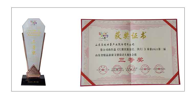 熱烈祝賀我司作品《孔薯家裹(菊花、滿月)》榮獲2021第二屆山東省精品旅游文創(chuàng)設(shè)計大賽社會組三等獎
